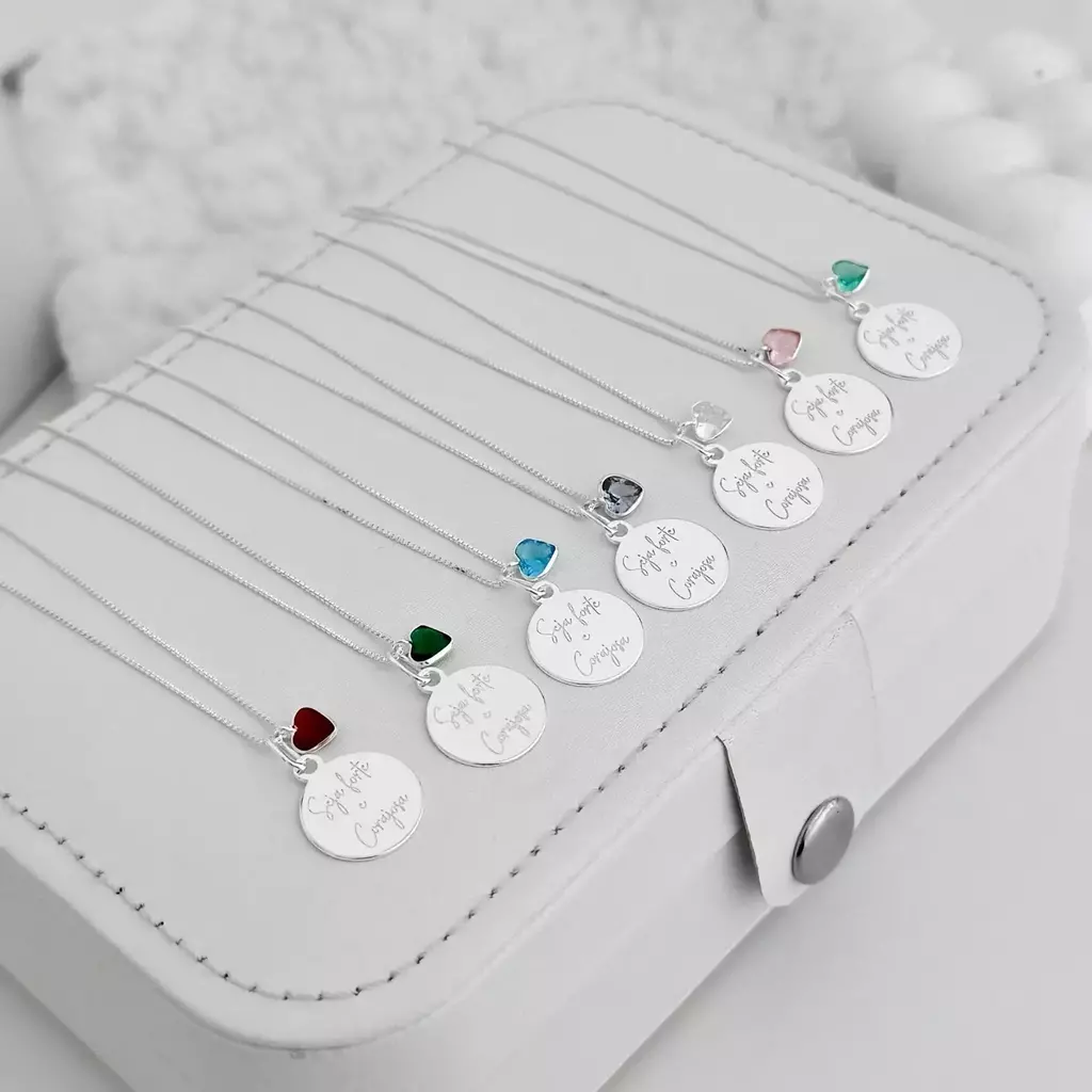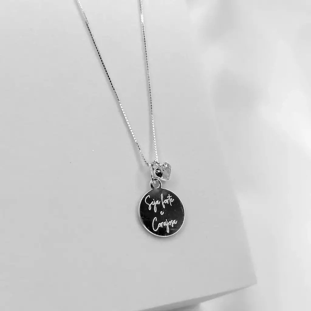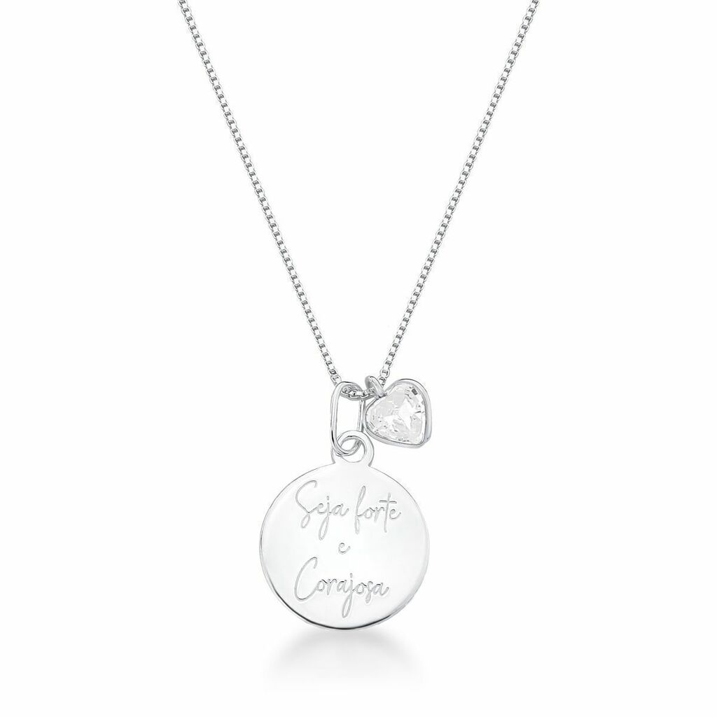 Inspire sua força com brilho e propósito. O colar em prata 925 com a frase Seja forte e corajosa e ponto de luz em formato de coração é a união perfeita entre delicadeza e significado. Seu design permite duas formas de uso: com o pingente da frase ou apenas com o coração, mantendo sempre o brilho do ponto de luz fixo. Uma joia feminina com mensagem emocional, ideal para representar fé, coragem e amor próprio em todos os momentos.